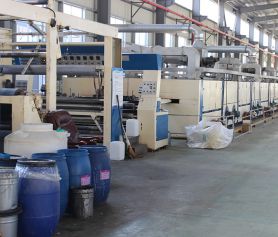 引進國外水刺法生產(chǎn)流水線,重型劍桿織布機臺,整形、熱熔、縫制、設備配套齊全。